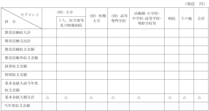 及び支出額を計上すること。また、「その他」が「学校法人部門」のみの場合、セグメントの名称を「その他」