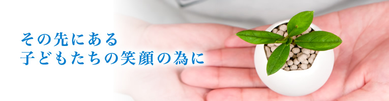 「その先にある、子どもたちの笑顔の為に」 私共の願いも皆様と同じです。子どもたちの未来の為に、私共も一緒に幼稚園・保育園業界の未来を考えていきたいと想っています。