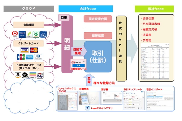 会計freeeはインプットツール、社会福祉法人用レポートシステムはアウトプットツールとして新開発。