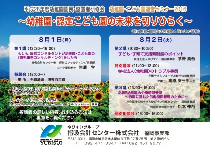 平成28年8月2日(火) 10時~16時 (個別相談会15時より)(昼食付)