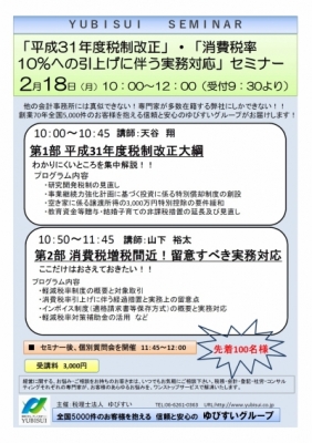 「平成31年度税制改正」・「消費税率10%への引上げに伴う実務対応」セミナー