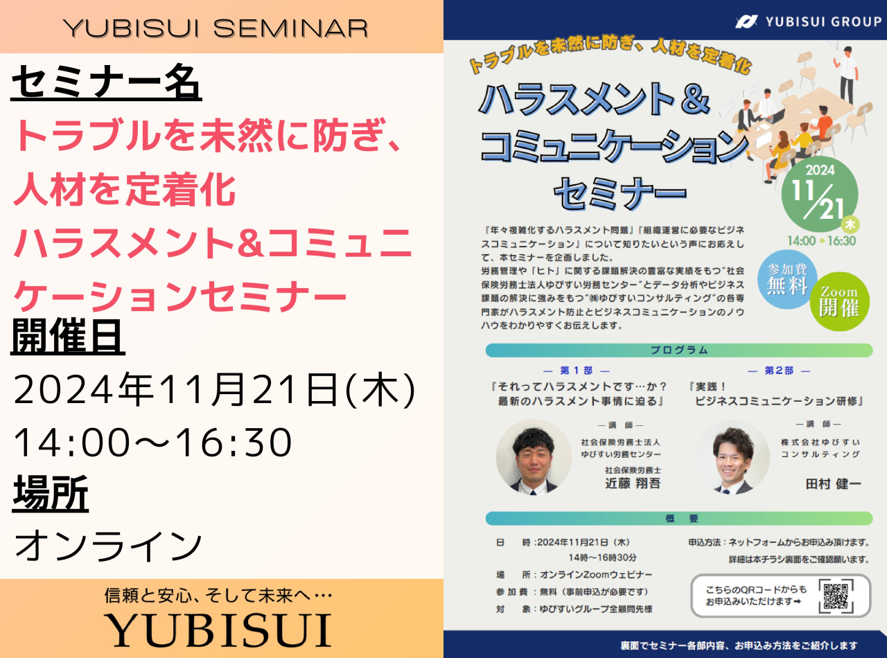 トラブルを未然に防ぎ、人材を定着化 ハラスメント&コミュニケーションセミナー