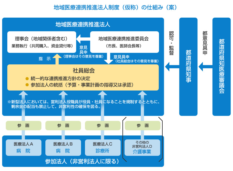 「地域医療連携推進法人の創設」を含んだ改正医療法は、2015年9月16日に可決されました。ただ、適用開始は公布の日から2年以内の予定となっているため、今後取扱い等が公表されていきます。ゆびすいにおいても、情報が入り次第、地域医療連携推進法人の最新情報を提供いたします。