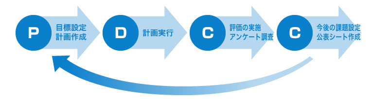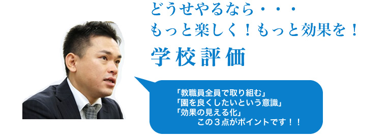 PDCAサイクルをドンドン回して、園の改善に取り組むことが、学校評価の狙いです。
